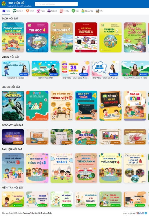 Triển khai hệ thống lưu trữ đám mây: Xây dựng một nền tảng thư viện số dựa trên công nghệ đám mây cho phép quản lý và truy cập các tài liệu số. Đây là nơi học sinh và giáo viên có thể tìm kiếm, đọc, xem, nghe, luyện tập và tải tài liệu.